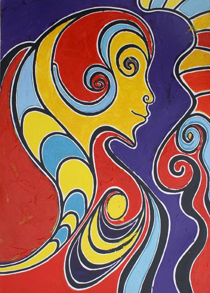 "Dama de Elche", acrylic & oil pastel 70 x 50